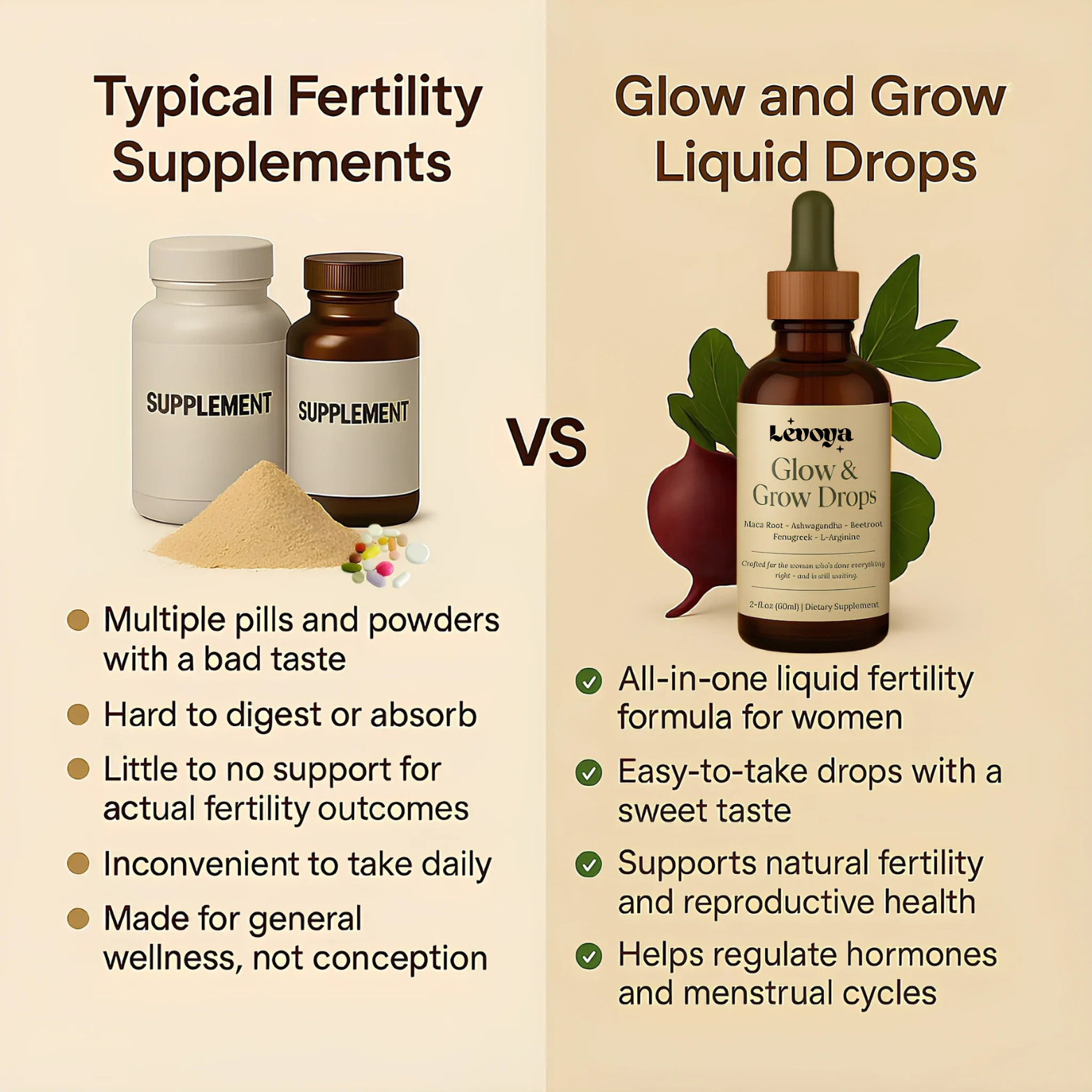 Levoya Glow and Grow Dropsare an easy step for women trying to conceive. With trusted herbs like Vitex, Maca, and Ashwagandha, this formula supports hormonal balance, encourages cycle clarity, and works with your body instead of against it.